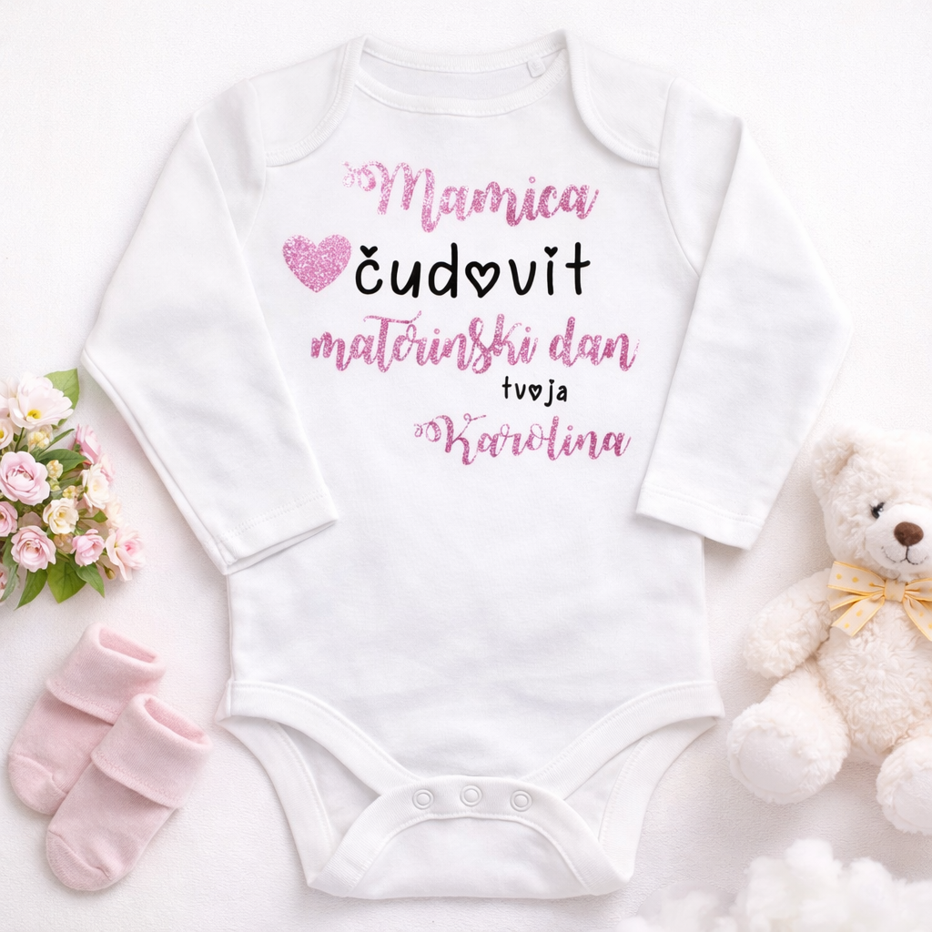 Ta personaliziran bodi je čudovita ideja za darilo ob materinskem dnevu in je prisrčno presenečenje za mamico, ki ji bo zagotovo polepšalo dan.