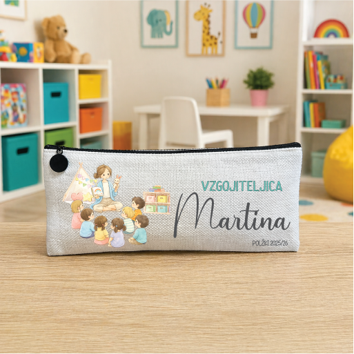 Toaletna torbica oziroma peresnica je bež barve in izdelana iz kakovostnega platna. Njene dimenzije so 10 × 24 cm. Pralna je na 30 °C, likanje pa priporočamo z notranje strani.